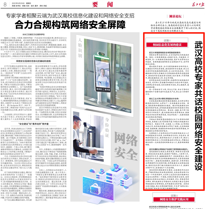 相关链接:https://epaper.service.dawuhanapp.com/pages/content/index?url=%252F%252Fepaper.service.dawuhanapp.com%252Fapi%252Fcontent%252Finfo%253Fdate%253D2022-09-29%2526id%253D242641&title=%25E6%25AD%25A6%25E6%25B1%2589%25E9%25AB%2598%25E6%25A0%25A1%25E4%25B8%2593%25E5%25AE%25B6%25E5%2585%25B1%25E8%25AF%259D%25E6%25A0%25A1%25E5%259B%25AD%25E7%25BD%2591%25E7%25BB%259C%25E5%25AE%2589%25E5%2585%25A8%25E5%25BB%25BA%25E8%25AE%25BE%2520%2520
